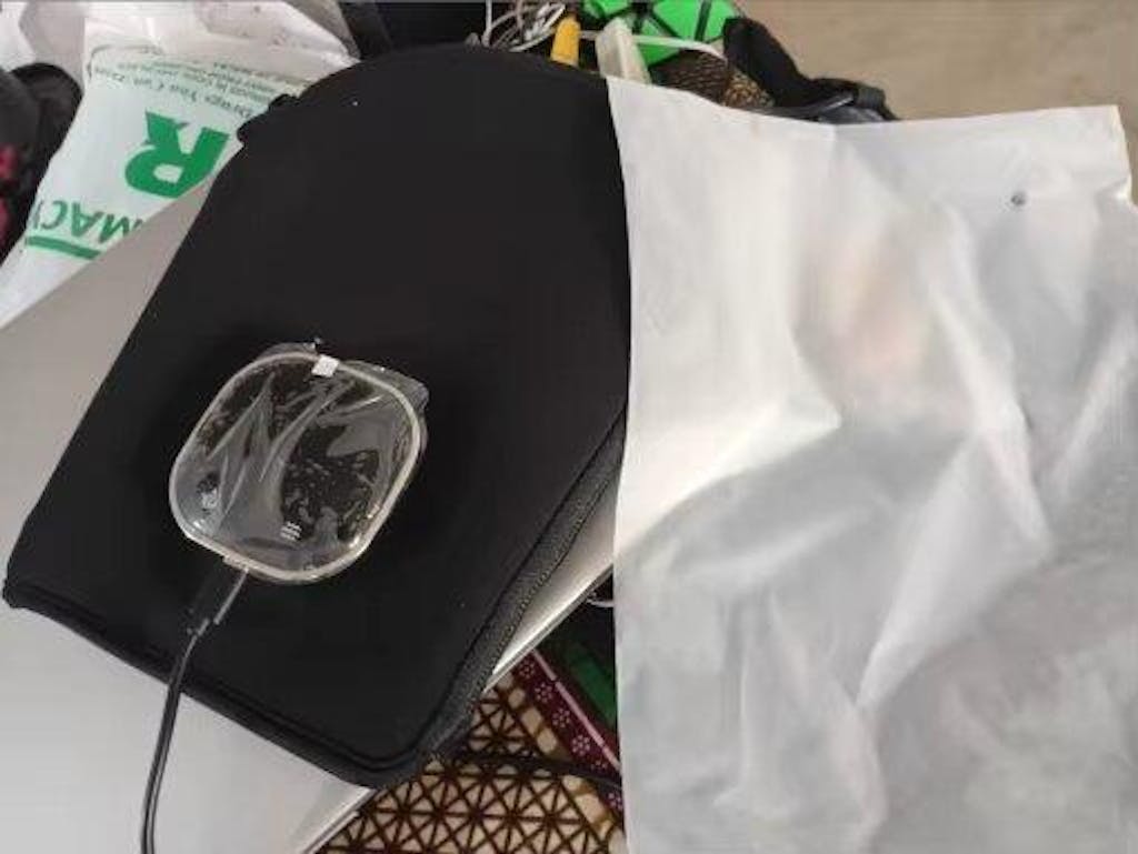 Spécifications techniques : Dimensions 7,87 x 3,66 pouces, matériau néoprène confortable, poids plume de 0,3 lb, alimentation USB-C rechargeable avec chargeur 5V inclus.